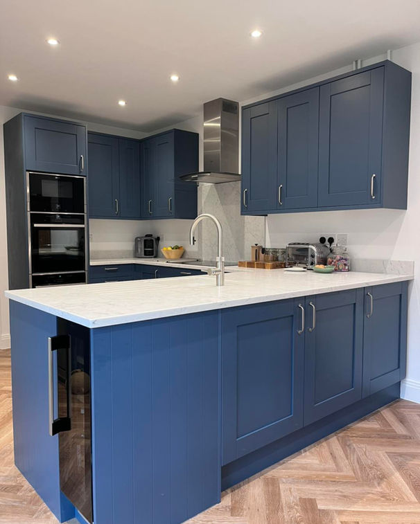 The doors are from our Kitchen Stori range in Madison design. The colour is Airforce Blue.